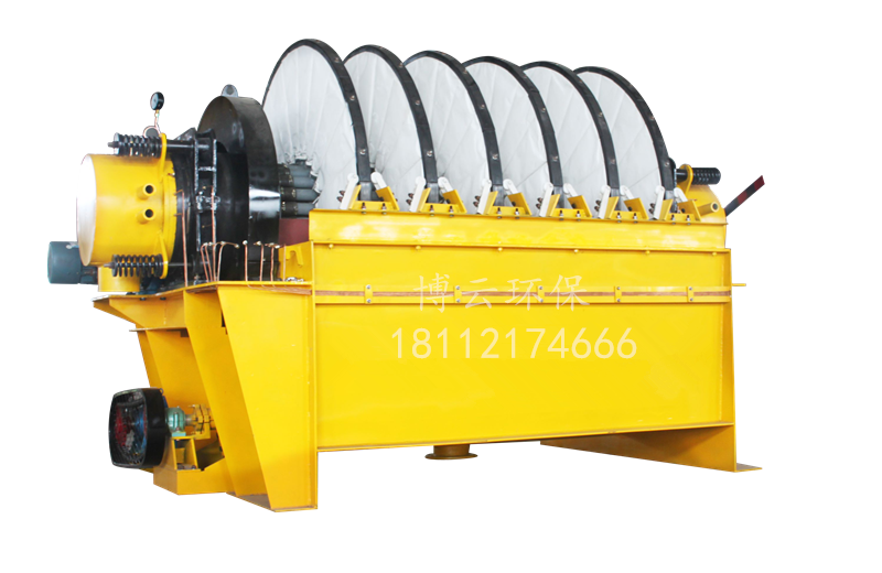 PG系列盤式真空過濾機(jī) (1)扇形濾板脫水孔分布均勻,孔率合理,筋條尺寸大,由高強(qiáng)度工程塑料制成,壽命提高了2-3倍。 (2)濾液管過濾數(shù)面大,分配頭腹腔容積大,提高了抽氣率和濾液排放效果。 (3)耐磨錦綸、單或復(fù)絲濾布使脫餅率高且不易堵塞,使用壽命長。 (4)多點(diǎn)干油泵集中多點(diǎn)自動潤滑。 (5)濾布自動清洗裝置,保持了其良好的脫水效果。 (6)臥式強(qiáng)制高速攪拌、軸端采用橡膠及石墨盤根和水壓差三重密封不漏漿。 (7)主傳動無級變速,依物料的濃度及流量調(diào)節(jié)(交流調(diào)速電機(jī)或變頻器),以求達(dá)到理想的工作效果 。 (8)每盤由20片扇形板組成,加強(qiáng)了過濾過程控制,成餅厚度均勻。 (9)磨擦片采用特制耐磨硼鑄鐵,剛?cè)嵯酀?jì)密封佳,使用壽命達(dá)到十年以上。 (10)濾液管為高強(qiáng)度耐磨陶瓷復(fù)合鋼管,提高壽命10倍以上。 (11)濾液管與濾扇接口去掉下法蘭,采取模具定位直接焊接,減少了90%可能的漏氣點(diǎn)。